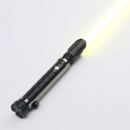 "The Shield custom is specially created for beginner Jedis and Sith Lords. Connect with this and become a part of the Jedi Order. This has one of the most eye-catching hilts. It is a 29cm long hilt and contains silver and black colors with a specific theme of Empire’s technology. Besides appearance, the hilt is as strong as it looks. The plane-Grade Aluminium material makes it durable and lighter than other metal hilts. Plus, the rough surface of the hilt assists in a better grip. So, it is also easier to hold and swing Shield Custom . This contains some of the most advanced features. It is an RGB which is considered the most reliable . They have 12 unique sound fonts as well as 12 preset colors, including yellow, purple, and white. You can shift from Jedi to Sith lord personality in seconds by changing the blade color. You get a 36 inches long polycarbonate blade alongside the hilt. It is a combat-grade material and can withstand heavy thrashing. Moreover, the LED inside the hilt gives more vibrant colors. Similarly, the battery of this is second to none. This has a 2000 maH battery with a fast charger. You can charge it in an hour, and it will last the entire day. Features The Shield Custom features include Pre-Power ON, Blaster Deflection Effects, Lock-up Effects, Flash-On-Clash Effects, Volume Adjustment, Light Effective Adjustments, Force Sound Effect, Background Music, and Smooth Swing Effect.